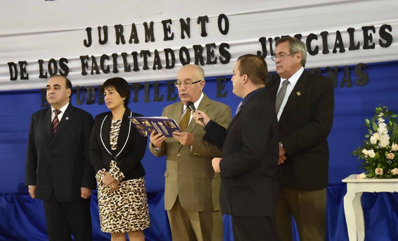 Con el fin de fortalecer el acceso a la justicia, el miércoles pasado se llevó adelante el juramento de nuevos facilitadores judiciales en el distrito de San Cristóbal correspondiente al departamento de Alto Paraná. La actividad fue presidida por el ministro de la Corte Suprema de Justicia doctor Óscar Bajac Albertini, además participaron el abogado Rigoberto Zarza, director del Sistema de Facilitadores Judiciales; el intendente de dicha zona, Idelfonso Santander; el rector de la Universidad Privada del Guairá, Aristides Bittar; y jueces de Paz de la zona.