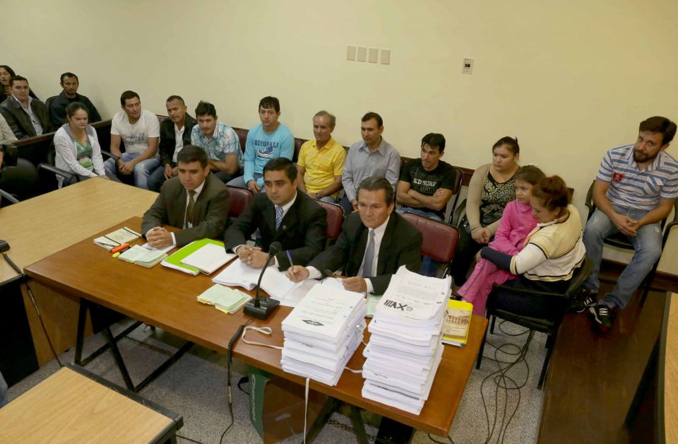 Están acusados en el caso Rubén Villalba, Felipe Martínez, Luis Olmedo y Dolores López Peralta por los hechos punibles de tentativa de homicidio doloso, invasión de inmuebles ajenos y asociación criminal. También Alcides Ramón Ramírez y Juan Carlos Tillería, por asociación criminal e invasión de inmuebles, mientras que Felipe Neri Urbina está procesado por frustración a la persecución penal. Además, figura entre los acusados un adolescente menor de 17 años de edad.