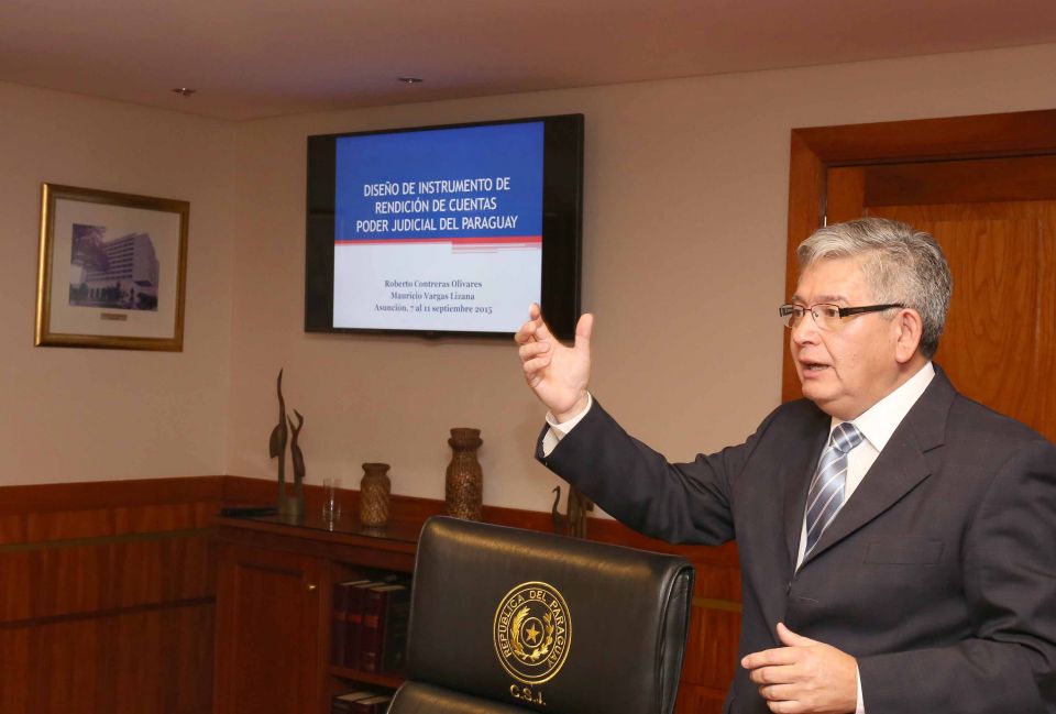En el marco del Programa de Fortalecimiento de Democracia y Gobernabilidad, expertos internacionales de Paraguay y de Chile presentaron este viernes al pleno de la Corte Suprema de Justicia el primer informe para la construcción de una herramienta de rendición de cuentas de Paraguay en cuanto a la operatividad del sistema judicial. El plan tiene por objetivo fortalecer los programas de transparencia que viene impulsando el máximo tribunal del país.