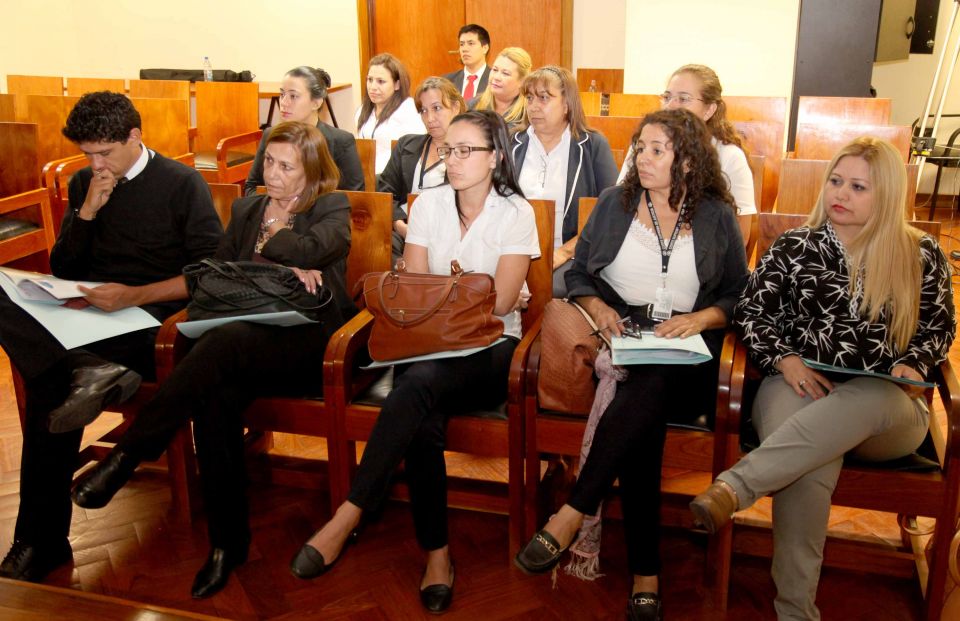 La apertura de la jornada de capacitación estuvo a cargo del doctor René Genes, de la Dirección General de Recursos Humanos de la Corte, y de la Lic. María Victoria Cardozo Brusquetti, coordinadora de la Dirección Técnico Forense de la institución judicial, para luego dar lugar a la disertante Graciela Zelada de Rodríguez, licenciada en Psicología Forense.