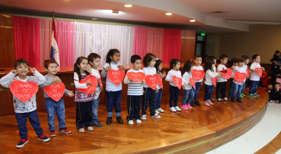 Niños de la guardería “Dulce Despertar”, de la Corte Suprema de Justicia, realizaron hoy un festival artístico para homenajear a las madres por su día, que se conmemorará el próximo domingo 15 de mayo. El acto se desarrolló con la presencia de numerosas madres en el Salón de Acto del Palacio de Justicia de Asunción.