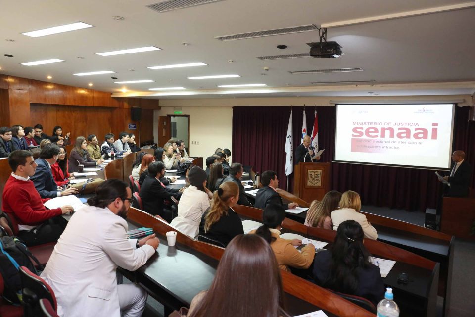 Uno de los temas tratados durante el seminario fue “Justicia Restaurativa y Medidas No Privativas. SENAAI como órgano de ejecución y prevención”, a cargo del abogado Orlando Castillo, quien se desempeña como director del Servicio Nacional de Atención al Adolescente Infractor (SENAAI) y resaltó que el servicio de atención al adolescente funciona por medio de un trabajo coordinado entre el Ministerio de Justicia, el Poder Judicial y la comunidad.