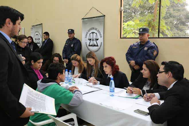 La presidenta de la Corte Suprema de Justicia, doctora Alicia Pucheta de Correa, y el ministro Sindulfo Blanco, que integran la Sala Penal, y la titular de la Sala Constitucional, ministra Miryam Peña, se encuentran realizando una visita carcelaria en la Penitenciaría Regional de Emboscada. Las autoridades judiciales verifican las situaciones procesales de los internos y mantienen entrevistas con ellos.