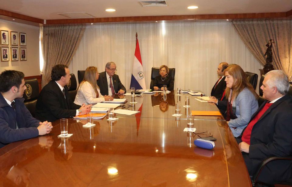 Representantes de Sifjupar así como del Primer Sindicato de Funcionarios Judiciales del Paraguay (Prisintrajupar), el Sindicato de Funcionarios Judiciales (Sinfujud) y de la Asociación de Actuarios se reunieron con la titular de la máxima instancia judicial, doctora Alicia Pucheta, y el vicepresidente primero, José Raúl Torres Kirmser, en la sala del Pleno de la Corte.