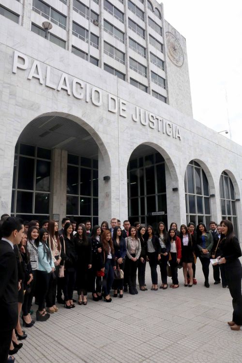 Estudiantes del segundo año de la carrera de Derecho de la Universidad Nacional del Este, Departamento de Alto Paraná, visitaron esta mañana el Palacio de Justicia de la Capital, donde pudieron recorrer diversas dependencias judiciales. La actividad se realiza en el marco de las visitas guiadas encabezadas por la Secretaría de Educación en Justicia, de la Corte Suprema de Justicia.