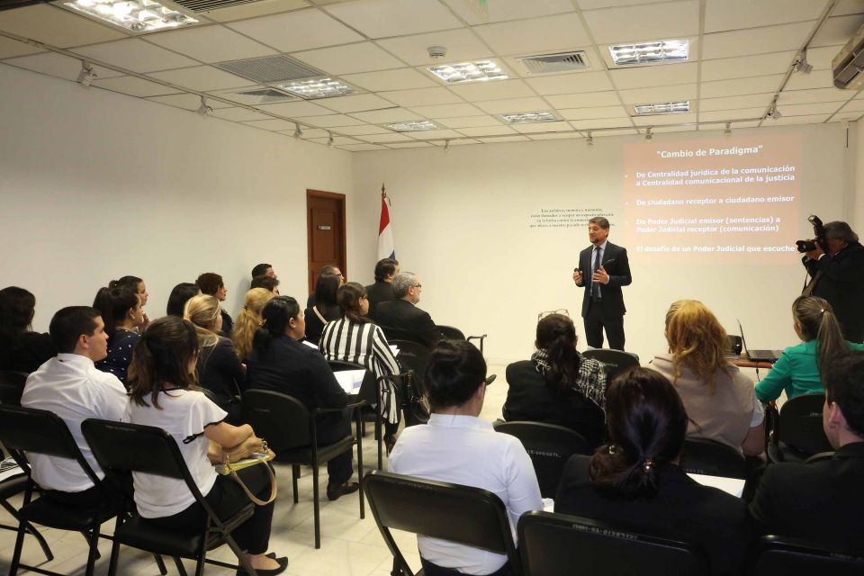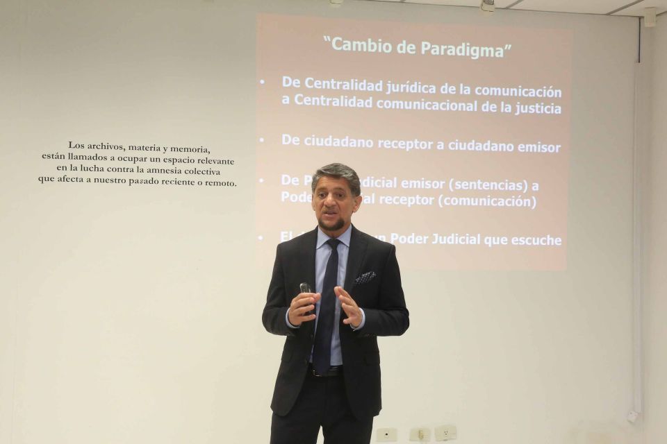 El doctor Gustavo Martínez Pandiani, experto internacional, disertó este martes, en el segundo día del Seminario-Taller de Información Pública y Comunicación desde el Poder Judicial. Estuvo dirigido a funcionarios de distintas áreas del Poder Judicial. El tema giró en torno al acceso a la información, la comunicación estratégica y marketing político para el fortalecimiento de la institución judicial. La actividad fue impulsada por la Dirección de Transparencia y Acceso a la Información Pública, en conjunto con el Centro Internacional de Estudios Judiciales (CIEJ) y la Dirección de Comunicación de la Corte.