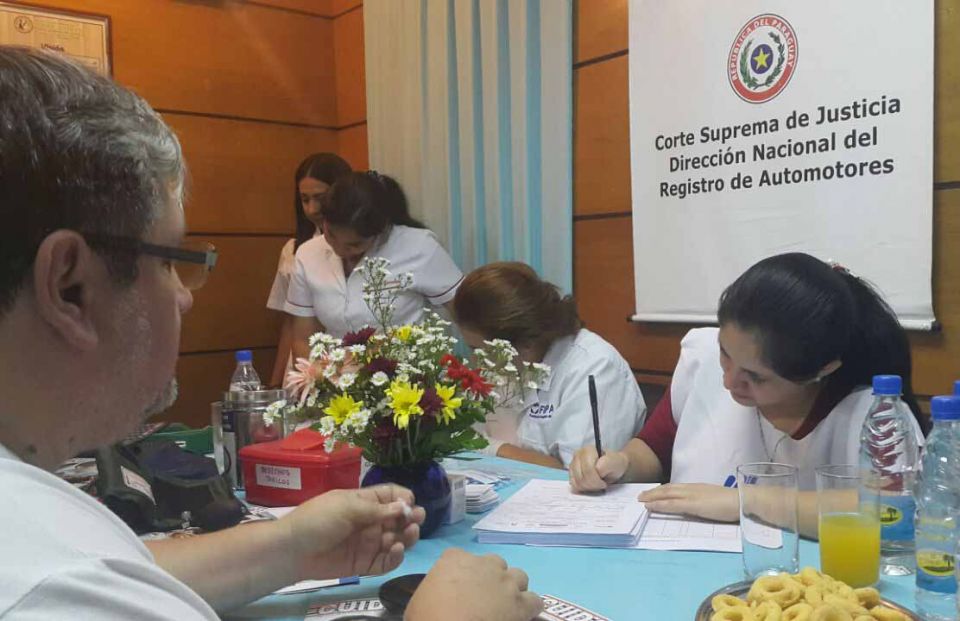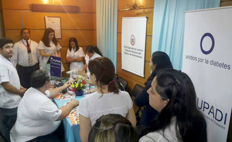 Una jornada para la detección de diabetes se lleva a cabo hoy en la sede del Registro de Automotores. El servicio es administrado de manera gratuita y está dirigido a funcionarios y funcionarias de la Dirección del Registro de Automotores, quienes recibieron recomendaciones nutricionales según los resultados de los exámenes. La actividad, realizada por la Fundación Paraguaya de Diabetes (Fupadi), tiene por objetivo prevenir esta enfermedad e informar acerca de la importancia de una correcta alimentación. Los profesionales indicaron que alrededor de 200 personas acudirán a realizarse los estudios.