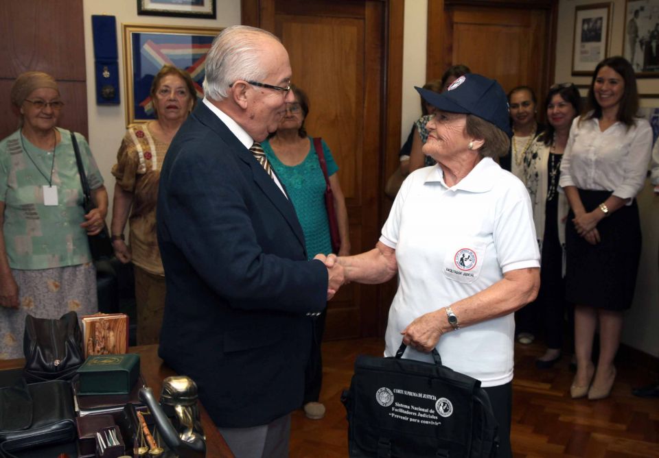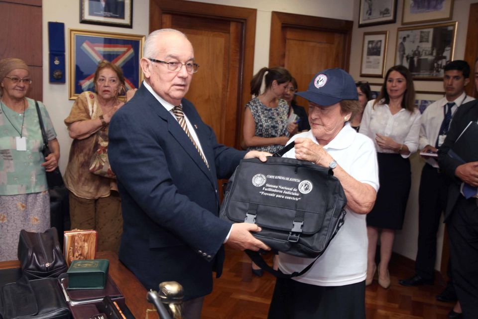 El Programa del Sistema Nacional de Facilitadores Judiciales se va fortaleciendo con nuevos voluntarios, en ese sentido, en la fecha juró ante el ministro de la máxima instancia judicial, doctor Miguel Oscar Bajac, Ida Sofía Diaz, conocida en nuestro país por su lucha constante por los derechos de las personas de la tercera edad y representante de la Asociación Acción por los Derechos del Adulto Mayor (ADAM).