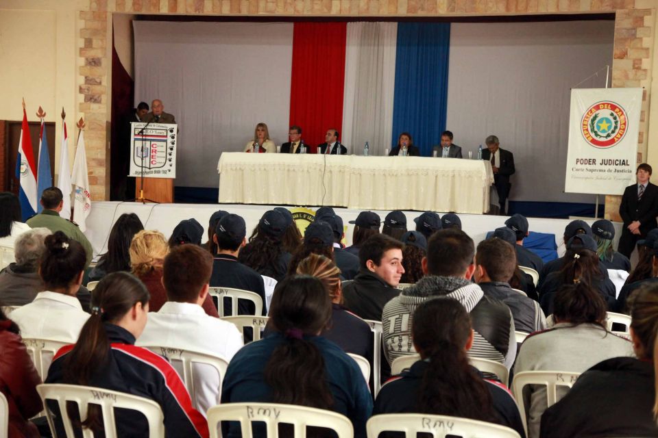 Con presencia del ministro responsable de la Circunscripción Judicial de Concepción, Miguel Óscar Bajac, autoridades judiciales y directivos del Centro Regional de Educación “Juan E. O’Leary”, esta mañana juraron 35 facilitadores estudiantiles del mencionado colegio. Inicialmente el coro de niños de la institución entonó el Himno Nacional en guaraní.