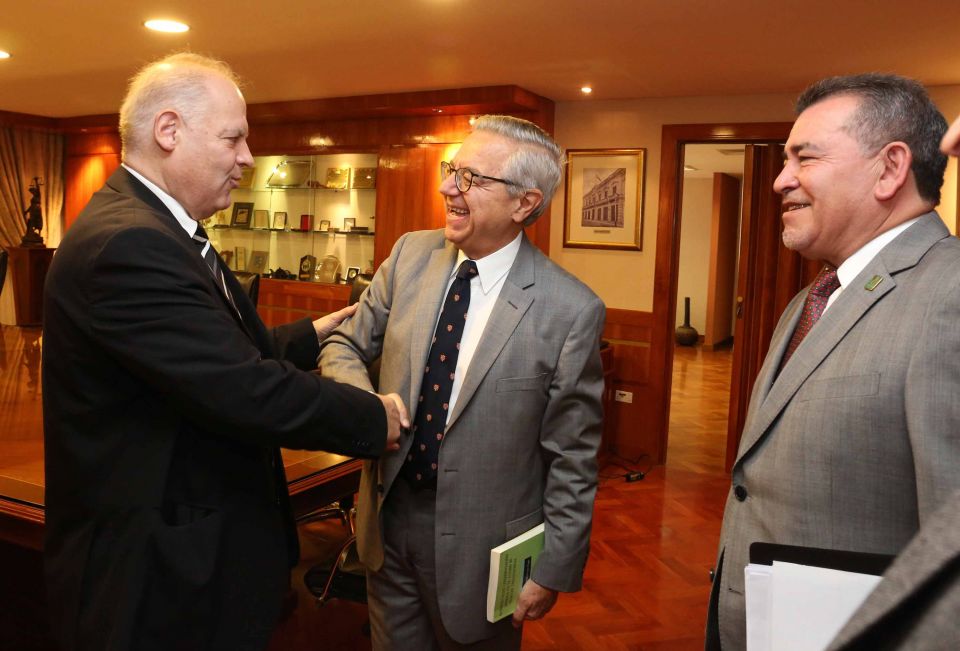 Esta mañana en la sala del Pleno de la máxima instancia judicial, el titular de la Corte Suprema de Justicia, Luis María Benítez Riera, recibió a una comitiva de la Asociación de Jueces del Paraguay encabezada por su presidente, Delio Vera Navarro, que acompañó a los representantes de la Universidad Nacional del Litoral de Argentina, doctores Javier Aga y Rodolfo Vigo. La visita fue para informar e invitar a la Maestría sobre Interpretación y Argumentación Jurídica que se hará en la ciudad de Santa Fe a fines de octubre de este año.