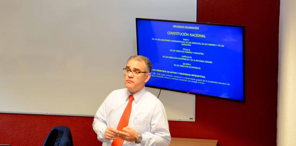 El pasado jueves 6 de julio el juez de Garantía Especializado en Delitos Económicos de la Capital, Humberto Otazú, dictó una clase magistral en el marco del Diplomado de Mediación en Propiedad Intelectual, en el Campus Urbano de la Universidad Autónoma de Encarnación (UNAE).