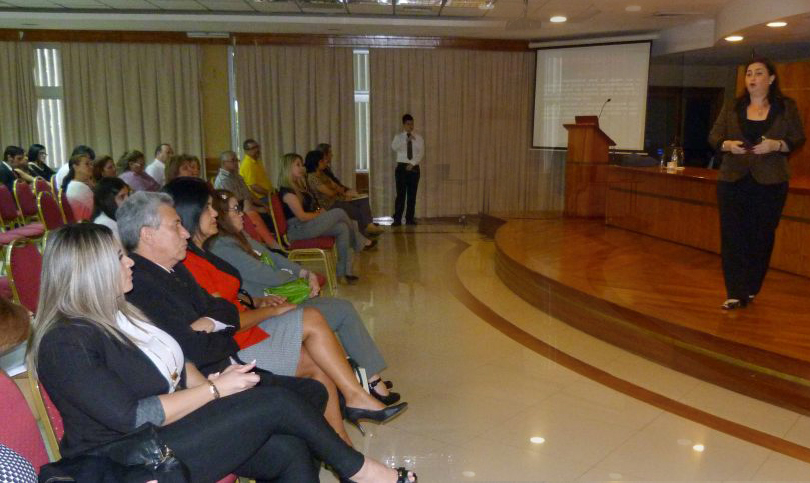 Días pasados se desarrolló la penúltima jornada del Diplomado Internacional en Derecho Penal de la Adolescencia y Derecho de la Niñez y la Adolescencia con presencia de la doctora Rocío Gossen disertando sobre “Medidas en el Ámbito Penal Adolescente. Estudios Socioambientales”. Esta actividad tuvo lugar en el Salón Auditorio del Palacio de Justicia de Asunción y va dirigida a los miembros de la Asociación de Magistrados Judiciales del Paraguay (AMJP), así como a interesados en el derecho de la niñez y adolescencia.