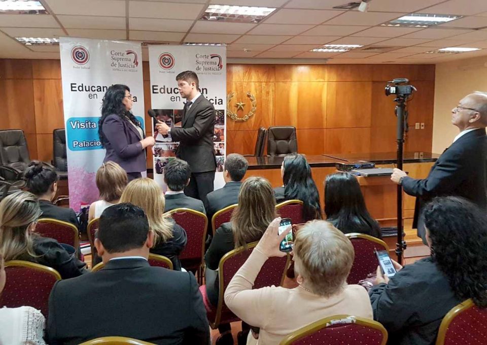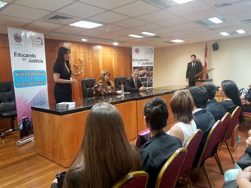 En la mañana de este lunes estudiantes universitarios de la ciudad de Guarambaré visitaron la sede judicial de la capital, por medio de su Secretaría de Educación en Justicia, en el marco del módulo "La Justicia nuestra meta". También realizaron un recorrido por las instalaciones de la sede judicial, pudieron dialogar con jueces Penales, quienes les explicaron sobre los distintos procesos que se siguen en la etapa de un juicio oral y público.