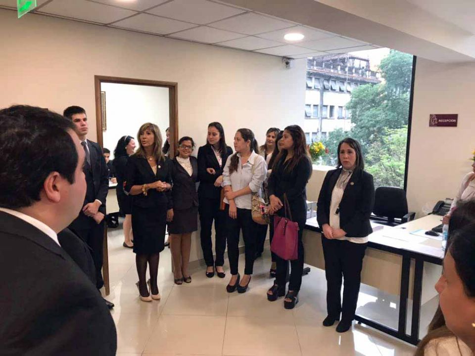 La Dirección del Registro de Automotores, dependiente de la Corte Suprema de Justicia, recibió hoy a estudiantes de la carrera de Notariado de la Facultad de Derecho de la Universidad Nacional de Asunción para conocer el procedimiento registral, desde la calificación de documentos hasta su expedición por medio de la Mesa de Salida. La visita guiada estuvo cargo del jefe de la Oficina Regional de Asunción, Ismael Corrales.