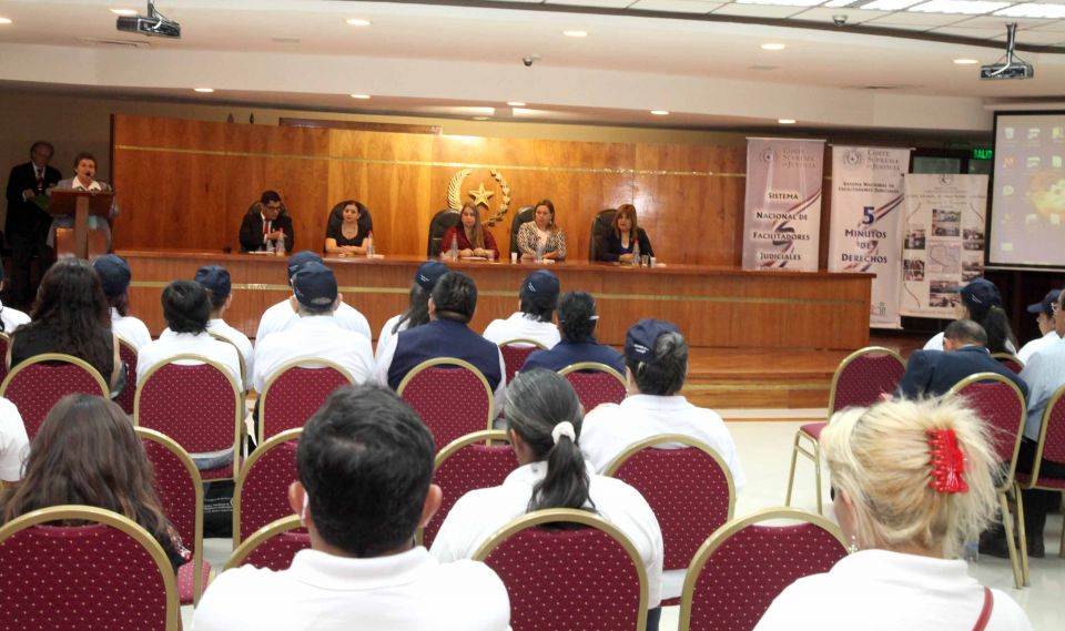 El Sistema Nacional de Facilitadores Judiciales de la Corte Suprema de Justicia llevó a cabo esta mañana el taller de “Actualización y Técnicas de Prevención en Materia Infantil y Maltrato a la Mujer”, en el Salón Auditorio del Palacio de Justicia de Asunción. Contó con el apoyo del ministro encargado de dicha dependencia, doctor Miguel Óscar Bajac Albertini.