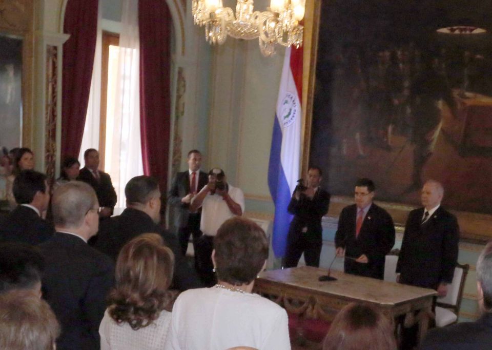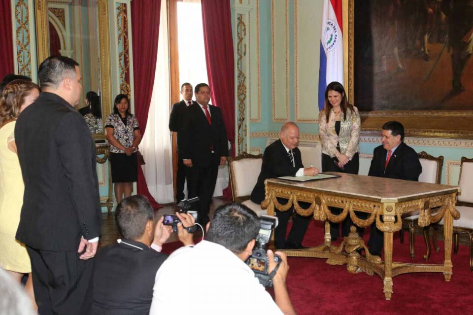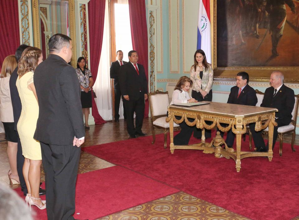 La máxima autoridad judicial, Luis María Benítez Riera, y titular del Poder Ejecutivo, Horacio Cartes, suscribieron el acta de juramento de los recién incorporados. La ceremonia se desarrolló en el Salón Independencia del Palacio de Gobierno con asistencia de autoridades de diferentes instituciones, invitados especiales, entre otros.