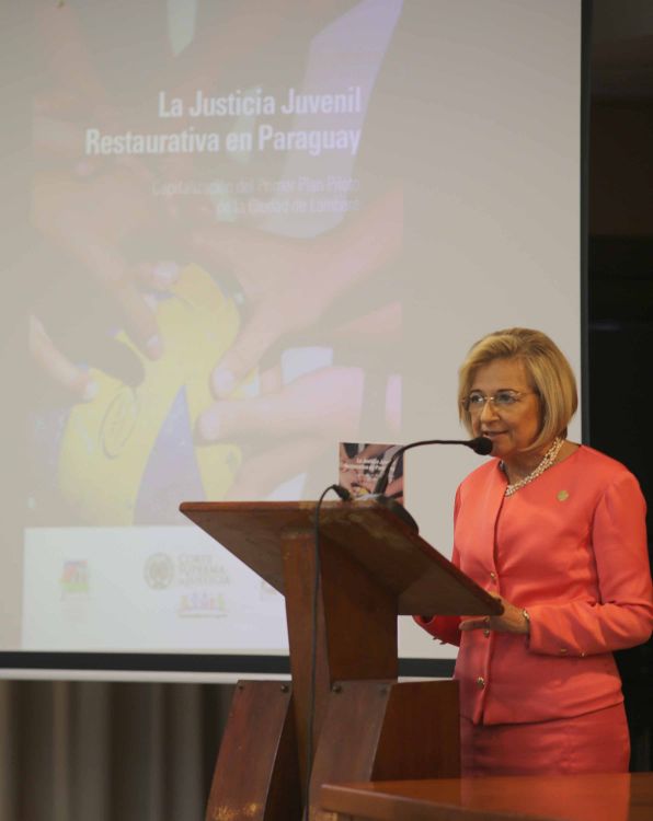 En tanto, la presentación de la obra “Justicia Juvenil Restaurativa en Paraguay”, capitalización del primer plan piloto de la ciudad de Lambaré, estuvo a cargo de la ministra Alicia Pucheta. La misma al valorar el material, dijo que mediante el mismo “se ha avanzado a la humanización de la justicia juvenil”. Asimismo, destacó su incorporación a los programas de las entidades jurisdiccionales, en el cual están trazados estadísticas, experiencias y por sobretodo, casos prácticos que servirán al ámbito jurídico.