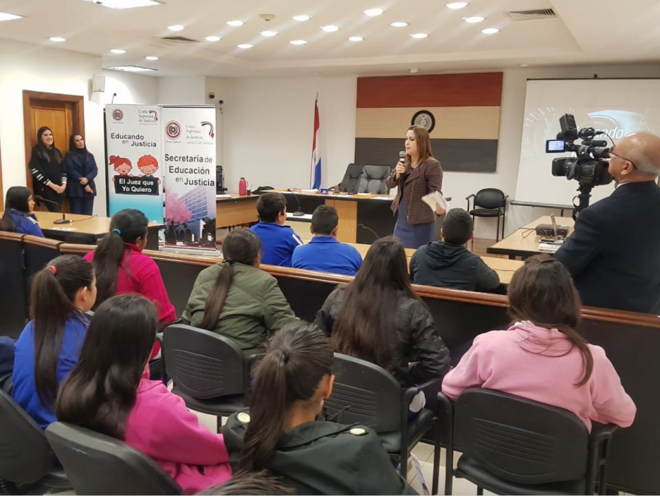 Durante la visita los estudiantes pudieron tener un conversatorio con los protagonistas del sistema de justicia magistradas del fuero Penal Adolescente doctoras Sandra Fariña y Valeriana Ferreira, que explicaron su función y qué causas atienden dentro de sus despachos judiciales. Los visitantes fueron recibidos en la sala de juicios orales.