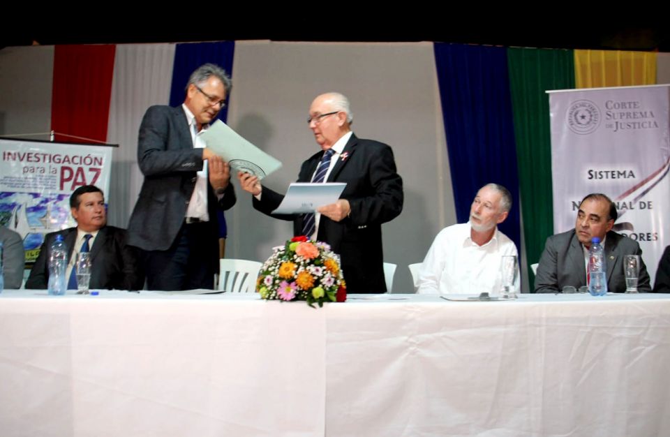 El Encuentro Nacional de Operadores de Justicia “El acceso a justicia, un camino y desafío compartido” se realizó el pasado miércoles 30 de mayo, en el salón auditorio de la Municipalidad de Loma Plata, Circunscripción Judicial de Boquerón. En la ocasión se contó con la presencia del ministro de la máxima instancia judicial Miguel Óscar Bajac Albertini, así como también Rigoberto Zarza, director del Sistema Nacional de Facilitadores Judiciales (SNFJ), y Lourdes Sandoval, responsable operativa del SNFJ.