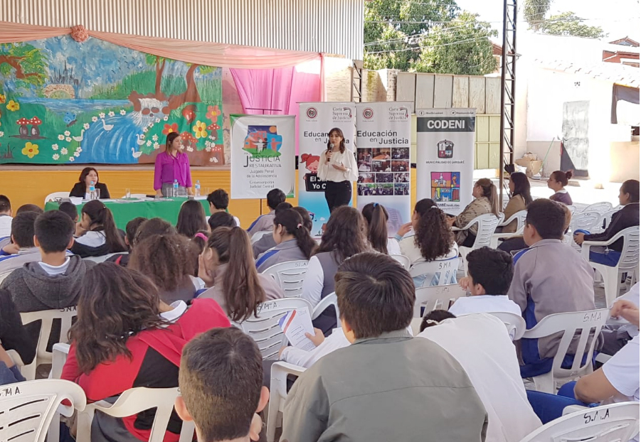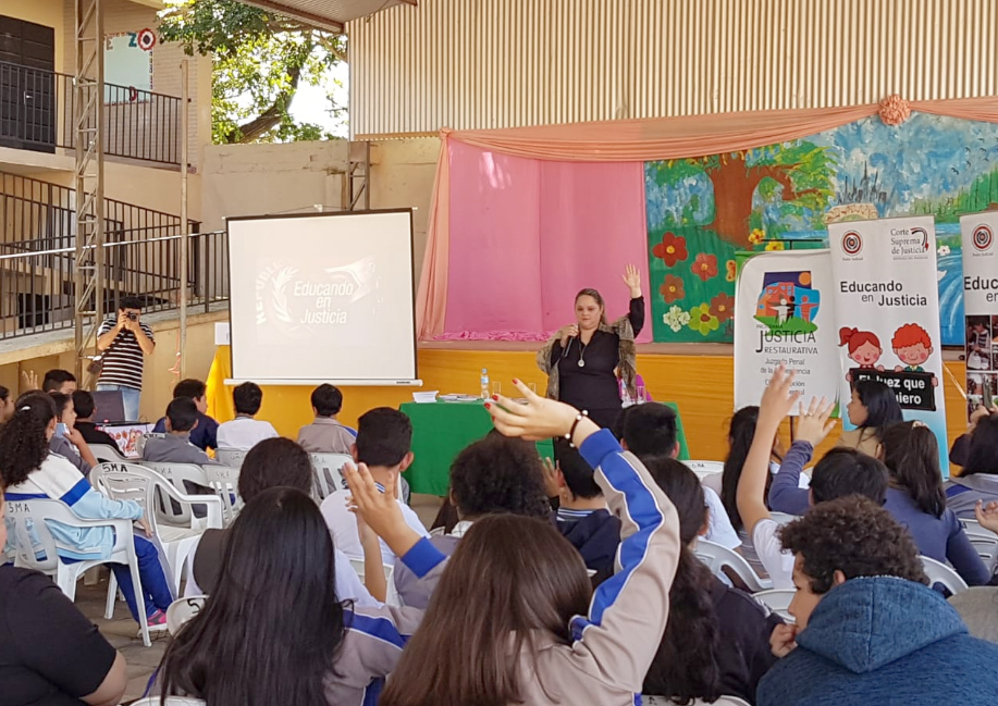 El emprendimiento educativo de la máxima instancia judicial realizó una jornada informativa en la Escuela San Miguel Arcángel sobre el funcionamiento del Poder Judicial y sobre varias problemáticas que aquejan a la comunidad lambareña. El encuentro contó con la exposición del juez penal Adolescente, doctor Camilo Torres, quien expuso sobre el bullying y consumo de sustancias estupefacientes.