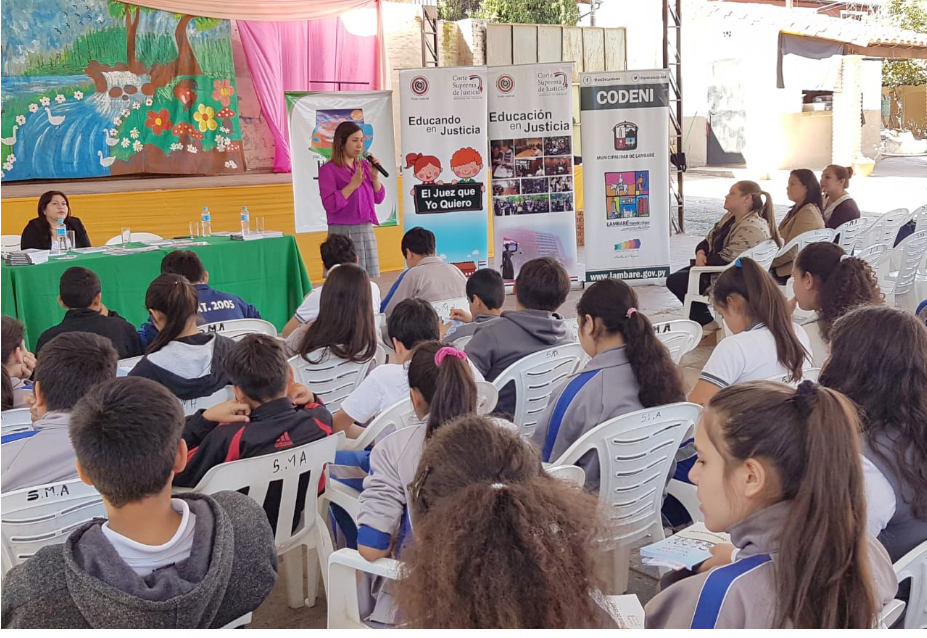 La Corte Suprema de Justicia a través de su programa educativo "El juez que yo quiero" desarrolló en la víspera una jornada enfocada sobre la protección de los Derechos del Niño en una escuela de la ciudad de Lambaré. El encuentro contó con la participación de la Consejería Municipal (CODENI) cuyo organismo presentó la iniciativa "Rompe mitos y ejerce tus derechos"
