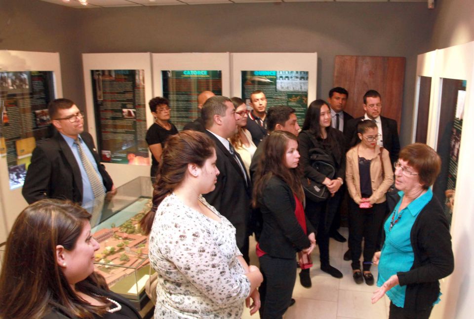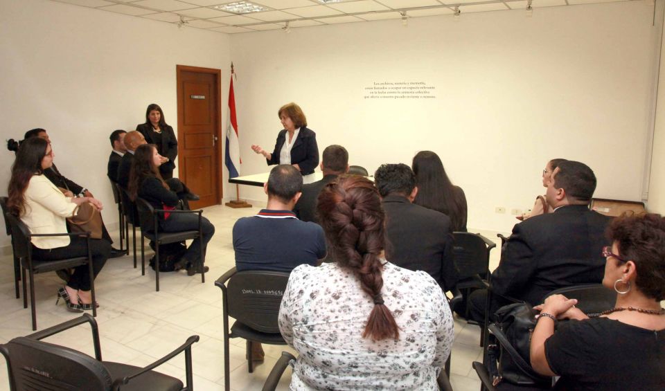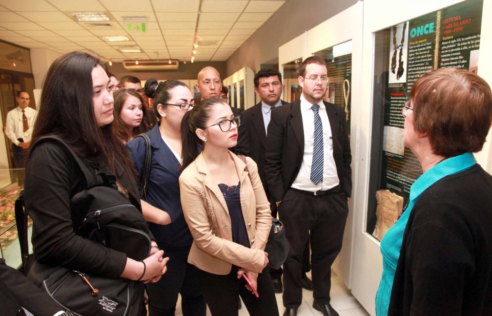 La coordinadora del Museo de la Justicia, licenciada Rosa Palau, contextualizó los aspectos relevantes sobre el régimen dictatorial de Alfredo Stroessner. Posteriormente, la licenciada Margarita Durán orientó al grupo de estudiantes mediante un recorrido por el museo, visualizando en los cuadros ilustrativos la historia de la justicia desde los pueblos guaraníes hasta nuestros días.