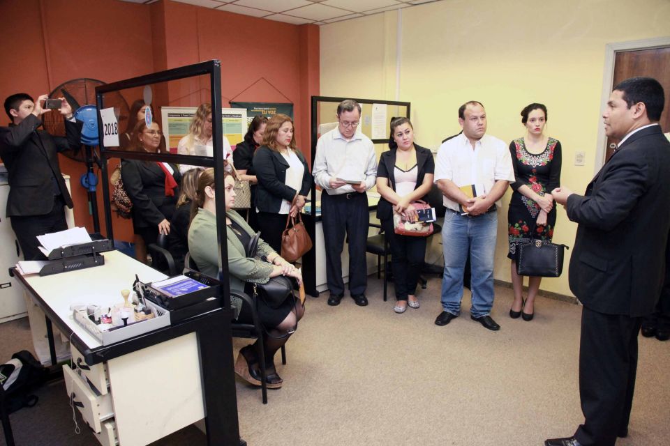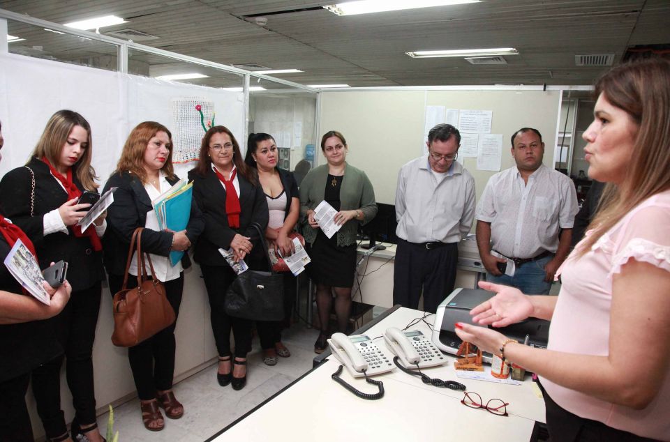 Los visitantes primeramente se interiorizaron sobre la función de la Mesa de Entrada Jurisdiccional, recinto en donde fueron informados por la coordinadora general, abogada Marta Machuca. La alta funcionaria señaló que en los inicios de la oficina se daba entrada solo a los expedientes del fuero Civil. Sin embargo, más adelante ya fueron incluidos los demás fueros.