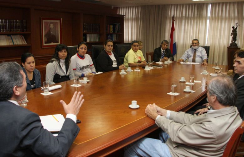 Directivos y representantes sindicales de los Registros Públicos mantuvieron hoy una reunión con el presidente de la Corte Suprema de Justicia Antonio Fretes, y de la que también formaron parte el director general de Administración y Finanzas del Poder Judicial, Roberto Torres; y el director administrativo, Gustavo Chamorro.