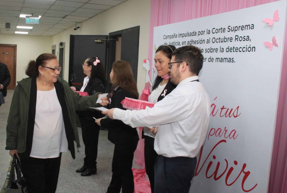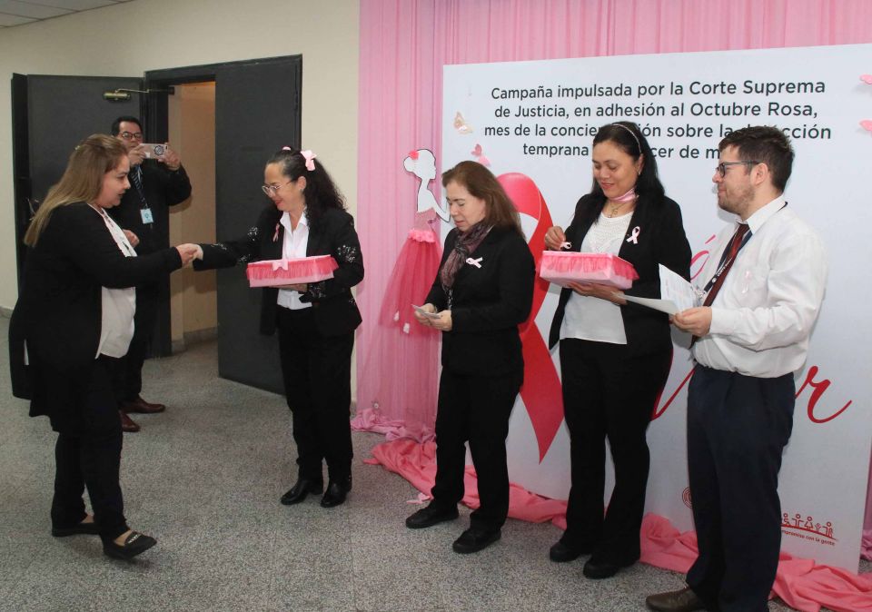 Con la entrega del lazo rosa y materiales informativos a los funcionarios judiciales y usuarios de justicia se busca sensibilizar sobre la importancia de los controles rutinarios y el diagnóstico precoz de esta enfermedad.