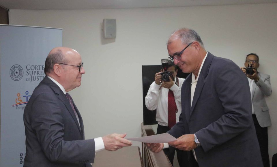 Durante el acto, el presidente de la Corte Suprema de Justicia, doctor César Diesel Junghanns, felicitó a las personas que accedieron a la ciudadanía paraguaya, expresando brevemente sus buenos deseos por esta nueva etapa en su vínculo con el país. La actividad se desarrolló en presencia de la secretaria de la Sala Civil y Comercial, abogada María Rita Monges Dos Santos, quien acompañó la ceremonia.