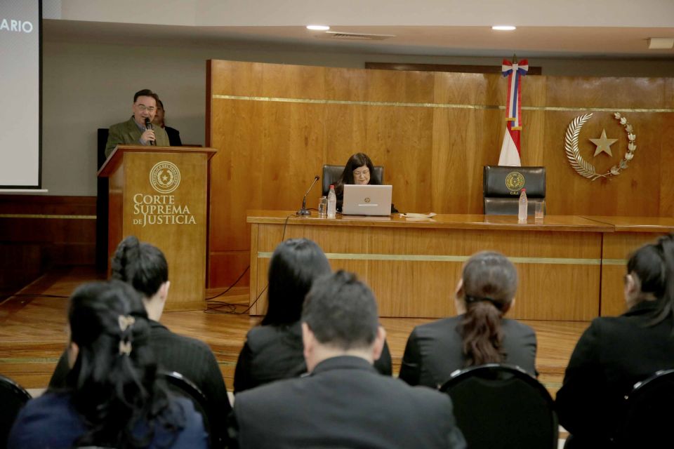 En el marco del Diplomado en Derecho Penal y Procesal Penal, la vicepresidenta primera de la Corte Suprema de Justicia e integrante de la Sala Penal, doctora Carolina Llanes Ocampos, abordó los fundamentos del procedimiento penal ordinario y su etapa intermedia, analizando sus principales disfunciones. La jornada formativa se desarrolló este martes 7 de octubre en el Palacio de Justicia de Asunción, con la presencia de magistrados, fiscales, defensores y profesionales del derecho.