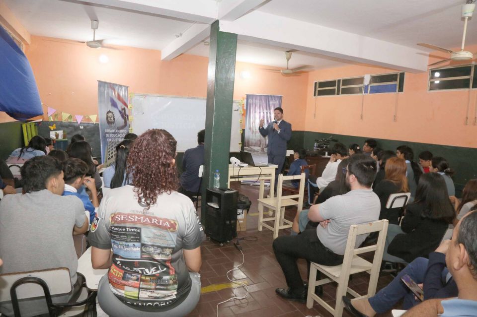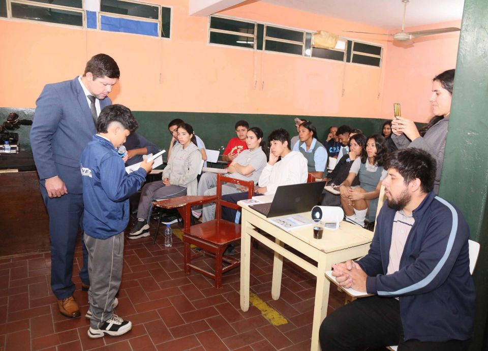 Como parte del módulo, un alumno de la institución leyó el Artículo N° 30 del Código de la Niñez y Adolescencia, que establece los deberes de los adolescentes, como respetar las leyes, cuidar el medio ambiente y obedecer a sus padres o tutores, además de prestar ayuda comunitaria según lo disponga la ley.