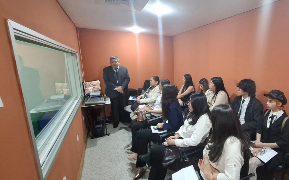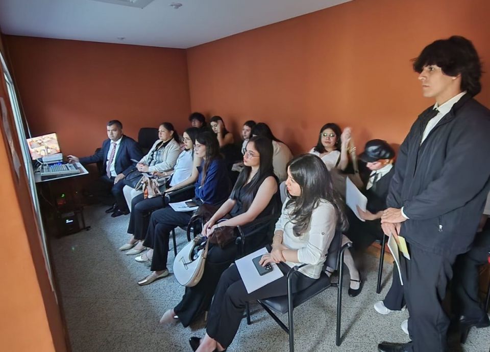 Como parte de la experiencia, los estudiantes participaron de una dinámica de role playing, que les permitió comprender de manera práctica el procedimiento. Posteriormente, el abogado Israel Núñez, asistente de la Cámara Gesell, brindó detalles técnicos sobre la estructura y funcionamiento de la sala.