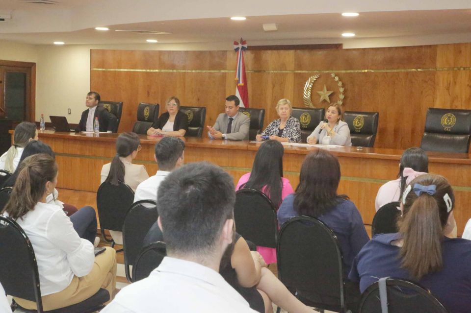Acompañaron la actividad la directora general de Capital Humano, licenciada Rosa Szarán; el director de Planeación y Selección de Personal, abogado Eduardo José Benítez Araujo; la jefa del Departamento de Selección de Personal, licenciada Cinthia Ayala, y la jefa de Formación del Centro Internacional de Estudios Judiciales (CIEJ), Gloria Comas de Álvarez, junto a técnicos de la institución.