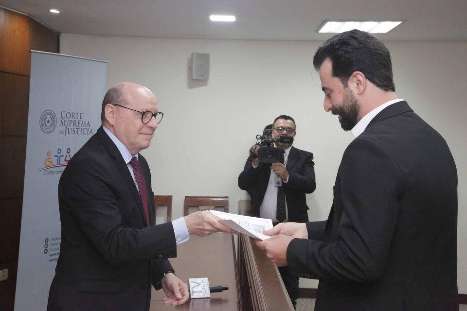 Este viernes 14 de noviembre, el presidente de la Corte Suprema de Justicia, doctor César Diesel Junghanns, tomó el juramento de rigor a siete nuevos ciudadanos naturalizados que obtuvieron la nacionalidad paraguaya. El acto se registró ante la secretaria de la Sala Civil y Comercial, abogada María Rita Monges Dos Santos, en cumplimiento del ordenamiento legal vigente y constituye un paso relevante en el proceso de integración política y social de quienes pasan a formar parte de la comunidad nacional.