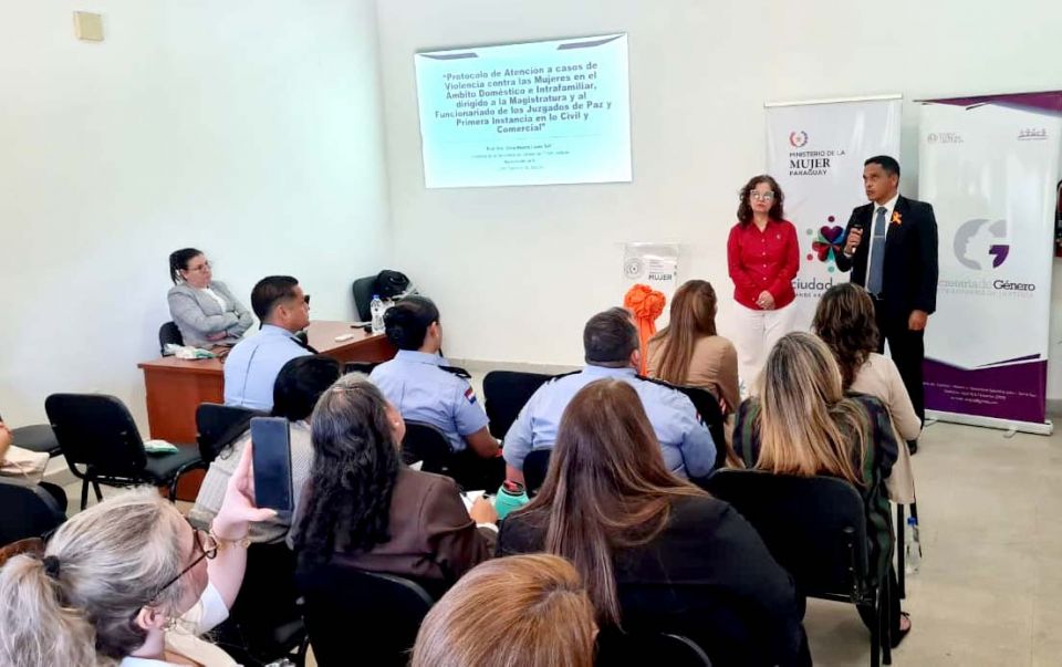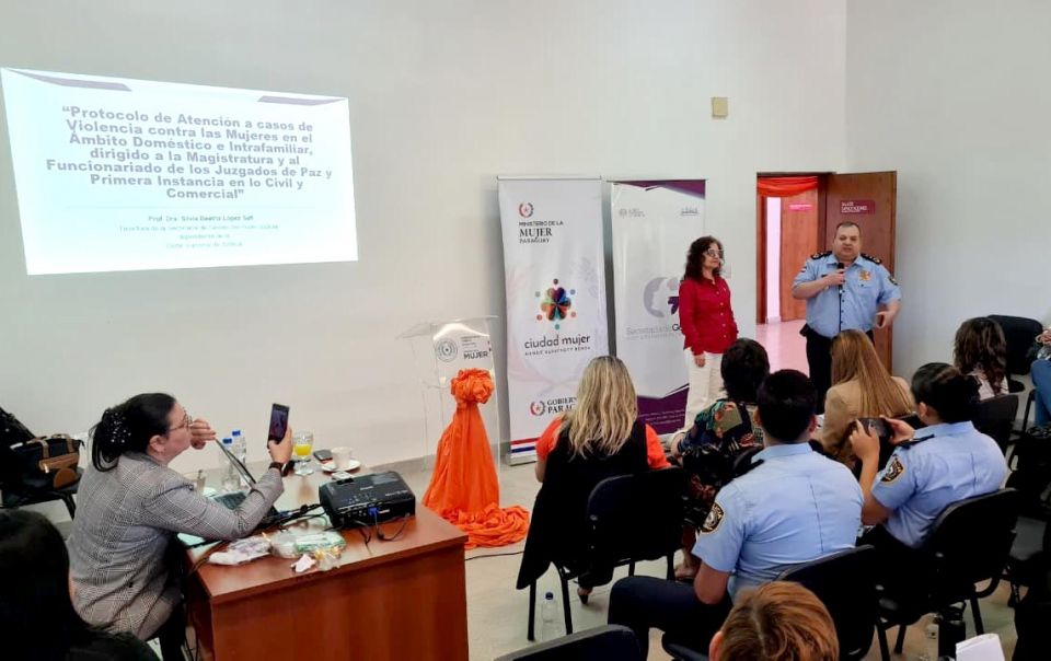 El martes 18 de noviembre de 2025, en el Centro Ciudad Mujer – Ñande Kerayvoty Renda, en Villa Elisa, la directora de la Secretaría de Género, Dra. Silvia López Safi, llevó a cabo una capacitación sobre el Protocolo de Atención a Casos de Violencia contra las Mujeres en el ámbito doméstico e intrafamiliar, dirigida a jueces y juezas de Paz, funcionarios del Poder Judicial, del Ministerio de la Defensa Pública, de la Policía Nacional y personal de los distintos módulos de atención a mujeres del citado centro.