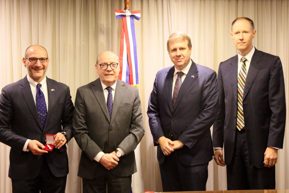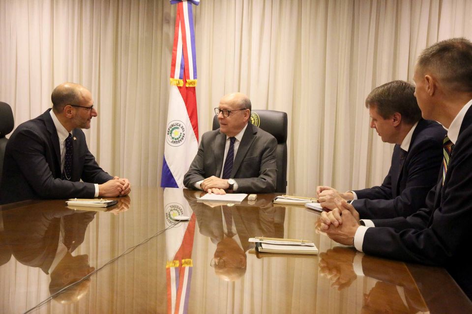 El presidente de la Corte Suprema de Justicia, doctor César M. Diesel Junghanns, recibió en audiencia oficial a representantes de la Embajada de los Estados Unidos en Paraguay. Participaron del encuentro Robert Alter, encargado de Negocios; Aarón Pratt, ministro consejero; y Brian Skaret, representante del Departamento de Justicia. La reunión tuvo como objetivo fortalecer la cooperación interinstitucional en el ámbito judicial y promover el intercambio de buenas prácticas.