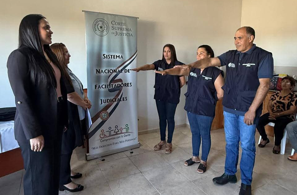 Funcionarios del Sistema Nacional de Facilitadores Judiciales (SNFJ) realizaron una asamblea en la Compañía Cerró Perô, del distrito de San Juan Bautista, Circunscripción Judicial de Misiones, donde se eligió y tomó juramento a tres nuevos facilitadores que prestarán servicio a la comunidad. Del acto participaron autoridades locales y pobladores de la zona.