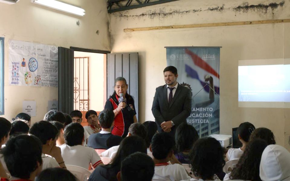 Durante la charla, se abordaron temas como los derechos y deberes de niños, niñas y adolescentes; la responsabilidad penal del adolescente; el bullying y el ciberbullying; y la prevención de adicciones; y funciones del Juzgado de Paz.