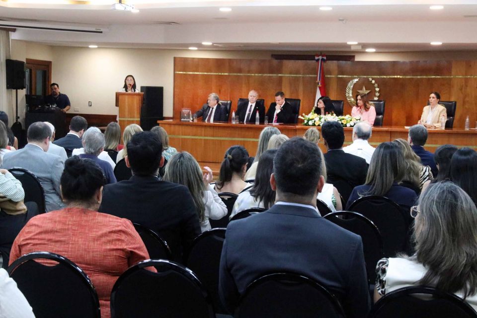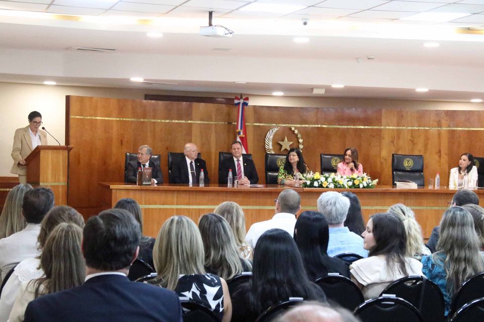 Con la presencia de la vicepresidenta primera de la Corte Suprema de Justicia, doctora María Carolina Llanes Ocampos, y de los ministros doctores Luis María Benítez Riera, Eugenio Jiménez Rolón y Alberto Martínez Simón, se realizó el acto de presentación del libro “La filiación en el siglo XXI. Propuesta legislativa de modificación del Código Civil en materia de filiación”, cuya coautoría corresponde a la abogada Josefina Sapena junto con las juezas del Fuero de la Niñez y la Adolescencia, doctoras María Eugenia Giménez y Bettina Ovando Bareiro. El evento tuvo lugar en el Salón Auditorio “Dra. Serafina Dávalos” del Palacio de Justicia de Asunción y contó con la participación de profesionales del derecho e invitados especiales.