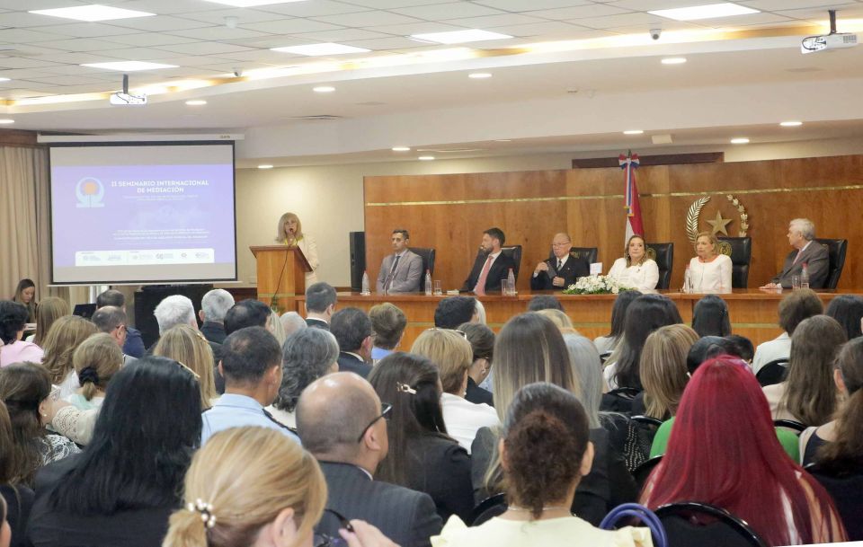 Este viernes 5 de diciembre se llevó a cabo la apertura del II Seminario Internacional de Mediación: “Consolidación del Servicio de la Mediación Judicial como Acceso Efectivo a la Justicia”. Asimismo, se conmemoraron los XXV años de la implementación del Servicio de Mediación, dependiente de la Corte Suprema de Justicia; los 10 años de la Dirección de Mediación y el Día del “Mediador Judicial del Paraguay”, en un solemne acto que contó con la participación de distinguidas autoridades del país. Durante el evento se otorgaron reconocimientos a exministros de la Corte que tuvieron a su cargo dicha dependencia y, en especial, se realizó un homenaje póstumo a la Prof. Dra. Gladys Bareiro de Módica (+).