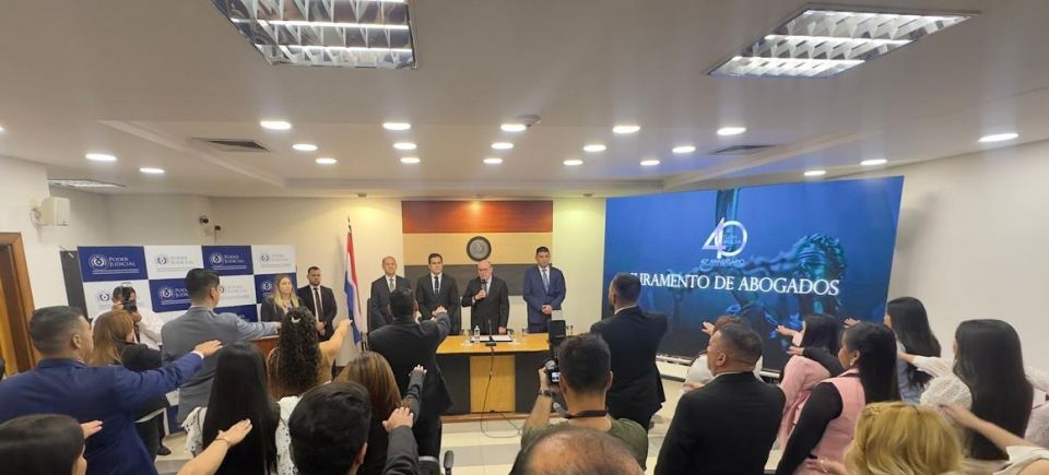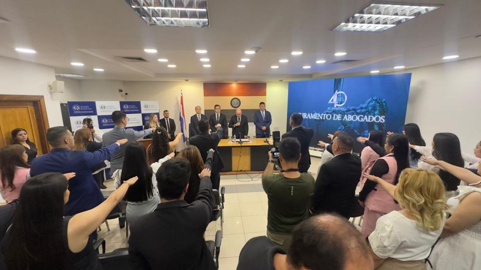 Previo a la presentación del Informe de Gestión 2025, en la sala de juicios de la sede judicial de Pedro Juan Caballero, el presidente de la Corte Suprema de Justicia, doctor César M. Diesel, tomó juramento de ley a 25 nuevos profesionales del derecho.