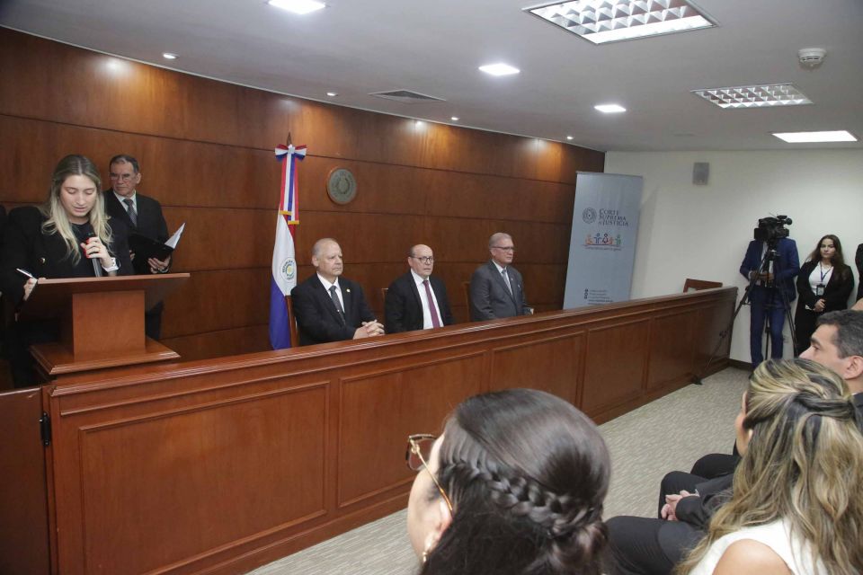 Este lunes 15 de diciembre, en la sala de conferencias del noveno piso del Palacio de Justicia de Asunción, el presidente de la Corte Suprema de Justicia, doctor César Diesel Junghanns, y el ministro de la CSJ, doctor Luis María Benítez Riera, acompañados por el fiscal general del Estado, doctor Emiliano Rolón, tomaron juramento de rigor a cinco magistrados y tres agentes fiscales.