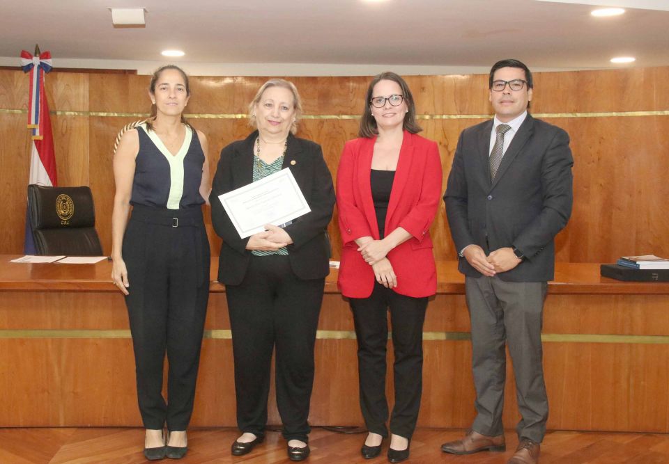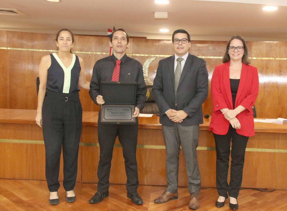 Este miércoles 17 de diciembre se premió a los ganadores del “Concurso de Monografías Prof. Dra. Gladys Bareiro de Módica”, Edición 2025, organizado por la Dirección de los Derechos de la Propiedad Intelectual (PI) de la Corte Suprema de Justicia. La mesa examinadora estuvo integrada por la abogada María Gabriela Talavera, responsable de la dependencia mencionada; la abogada Viviana Cabrera, coordinadora de la Gaceta Judicial; y el abogado Javier Gómez Arce, juez de Primera Instancia en lo Civil y Comercial de Lambaré, garantizando la transparencia y la excelencia durante el certamen.