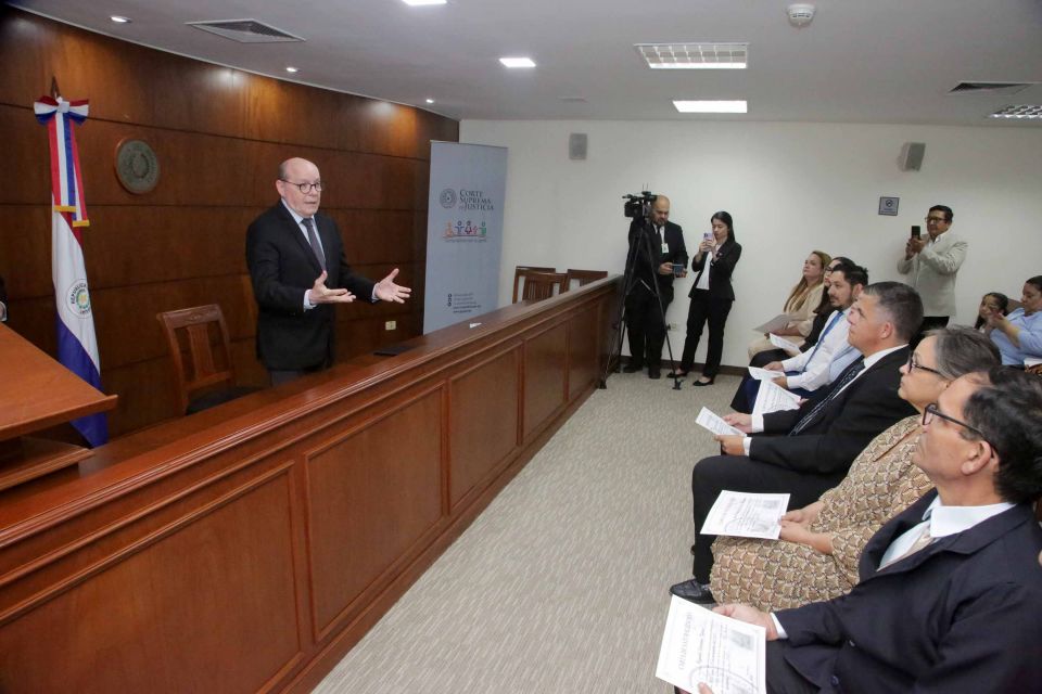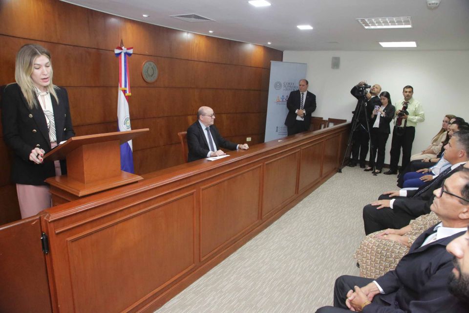 Este jueves 18 de diciembre de 2025, en la Sala de Conferencias del noveno piso del Palacio de Justicia de Asunción, el presidente de la Corte Suprema de Justicia, doctor César Diesel Junghanns, tomó juramento de rigor a ocho nuevos ciudadanos. El acto se registró ante la secretaria de la Sala Civil y Comercial, abogada María Rita Monges Dos Santos.
