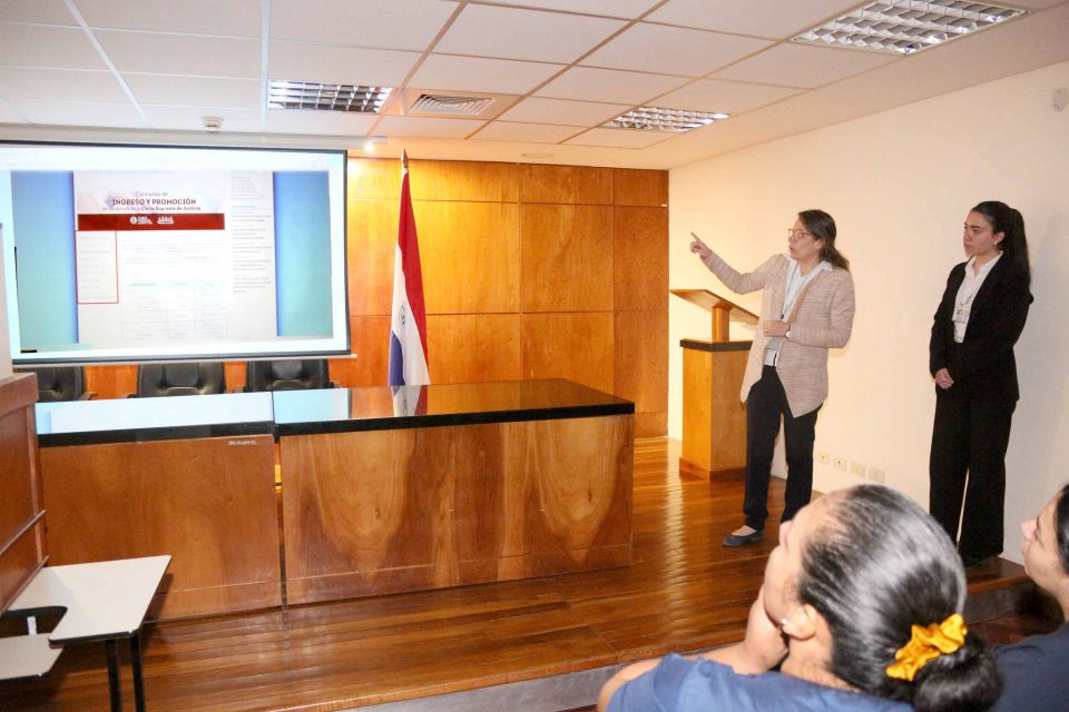 Este jueves 18 de diciembre, funcionarios de las direcciones de Capital Humano, de Desarrollo del Personal y de la División de Inducción socializaron con funcionarios contratados y recientemente nombrados sobre las normativas vigentes de la Corte Suprema de Justicia. La actividad correspondió a la última jornada informativa del año 2025 y se llevó a cabo en la Sala de Conferencias del octavo piso de la sede judicial de Asunción.
