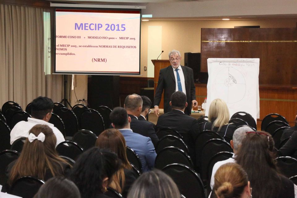 Este lunes 29 de diciembre continuaron las jornadas de capacitación sobre el Modelo Estándar de Control Interno (MECIP) en el Salón Auditorio “Dra. Serafina Dávalos” del Palacio de Justicia de Asunción, dirigidas a directores y auditores de la Dirección General de Auditoría Interna de la Corte Suprema de Justicia. El objetivo del curso es la capacitación continua de los funcionarios de la dependencia para el fortalecimiento institucional.