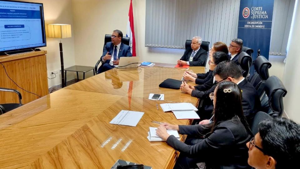 El miércoles 11 de febrero, en la sede del Palacio de Justicia de Salto del Guairá, se desarrolló una jornada de trabajo integrada por miembros del Consejo de Administración de la Circunscripción Judicial de Canindeyú y representantes de la Dirección General de Planificación y Desarrollo, orientada al fortalecimiento de la planificación de adquisiciones de bienes, contratación de servicios y definición de indicadores para medir la eficiencia en el uso de los recursos asignados a los centros de responsabilidad.