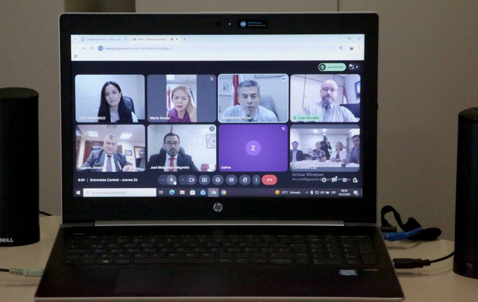 Las evaluaciones, desarrolladas de manera telemática, contaron con la participación de la presidenta del Consejo de Administración de Central, doctora María Teresa González de Daniel; el vicepresidente, magistrado Gustavo Bóveda; el juez Joel Melgarejo, miembro del Tribunal de Apelación en lo Civil; el juez Penal de Garantías Juan Francisco Recalde; la directora general de Capital Humano, licenciada Rosa Szarán.