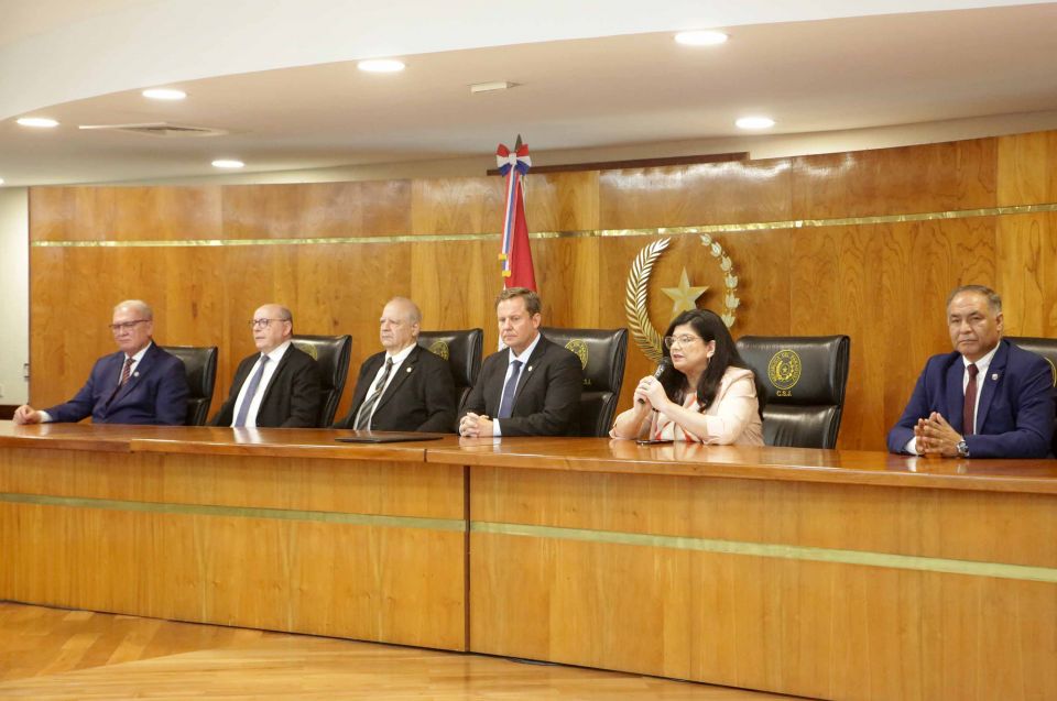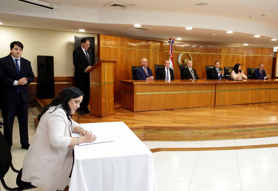 En el Salón Auditorio “Dra. Serafina Dávalos” del Palacio de Justicia de Asunción, este martes 3 de marzo, se realizó el acto de juramento de rigor a 4 magistrados, 5 agentes fiscales y 4 defensores públicos. La ceremonia fue encabezaba por el presidente de la Corte Suprema de Justicia, doctor Alberto Martínez Simón, el vicepresidente primero, doctor Luis María Benítez Riera, y los ministros doctores, Carolina Llanes Ocampos y César Diesel Junghanns. Participaron también el fiscal general, doctor Emiliano Rolón Fernández y el defensor general, doctor Javier Dejesús Esquivel.